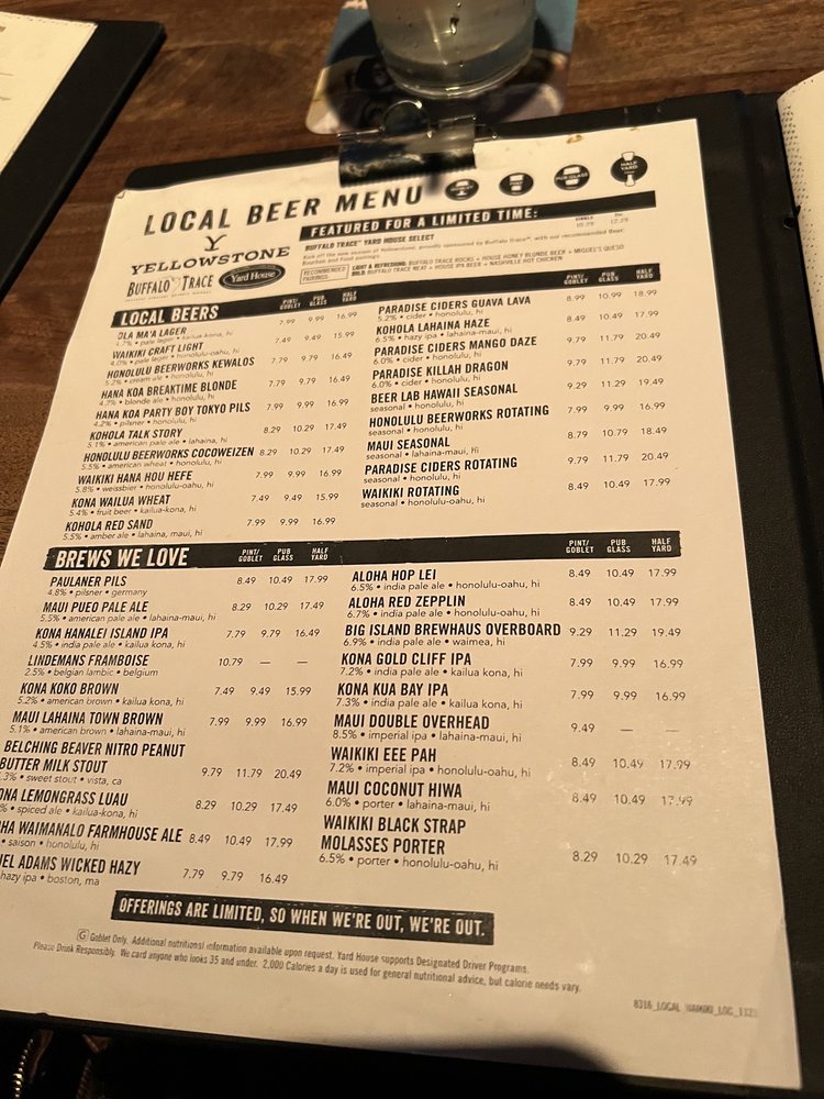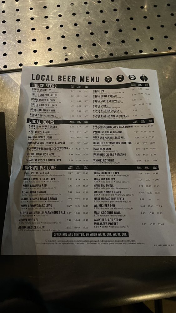 Yard House Honolulu Menu (Update 2025)